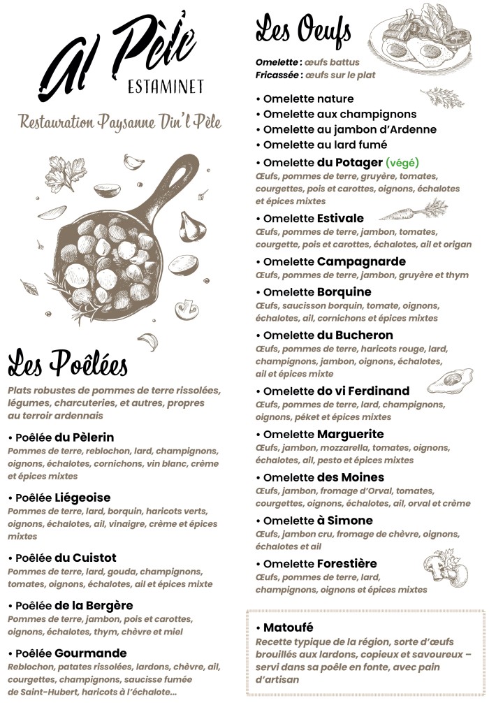 Restauration Paysanne - Omelettes - Poêlées - Crêpes - Brasserie