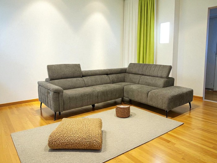 Ce salon d'angle au tissu aux contours très soignés est équipé d'un système de relaxation 0 gravity d'un confort suprême, et qui soulage la pression sur le corps pour une relaxation optimale.