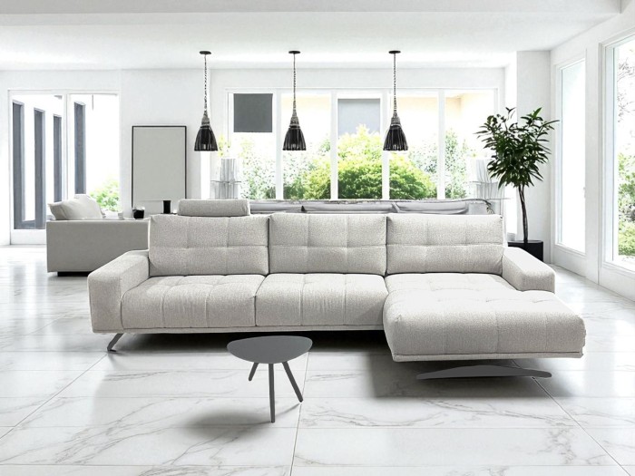 Recouvert d'un tissu haut de gamme ou de cuir, ce salon possède des têtières à crans ainsi que la possibilité de se transformer en un salon convertible.