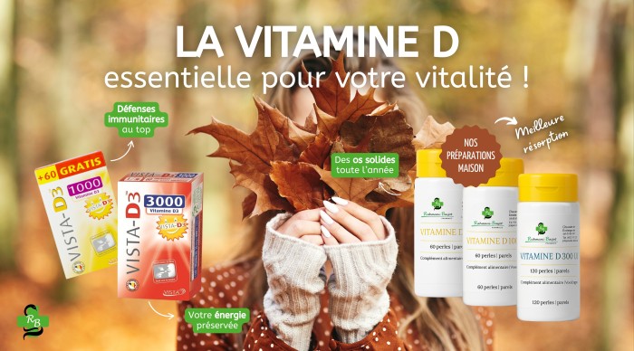 Avec l’automne et la baisse de luminosité 🌥️, il est essentiel de faire le plein de vitamine D pour rester en forme et maintenir notre énergie 💪. Notre équipe vous recommande les compléments Vista-D3 ainsi que nos préparations maison spécialement sélectionnés pour vous aider à combler vos besoins en vitamine D. 🌞