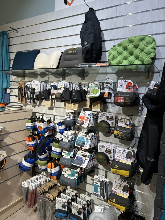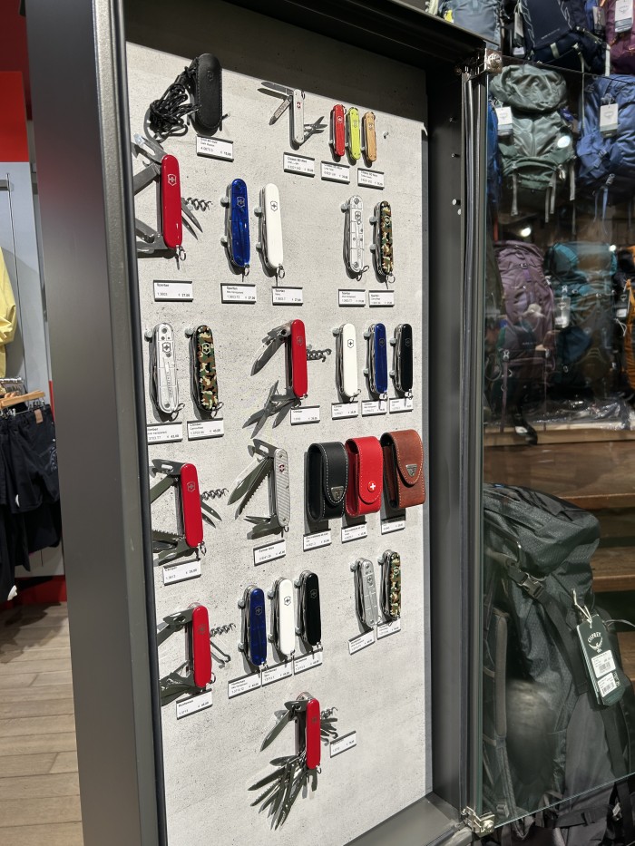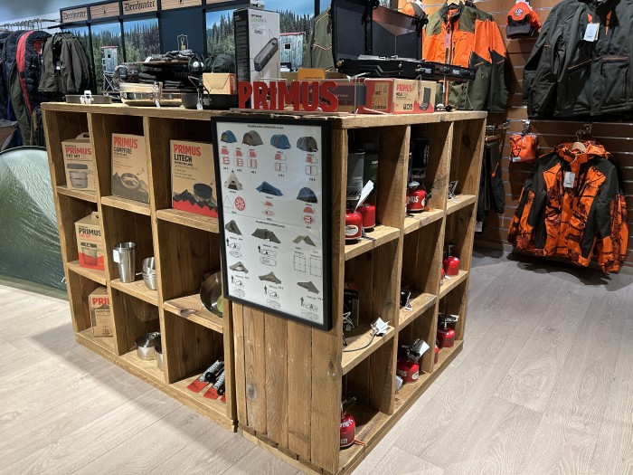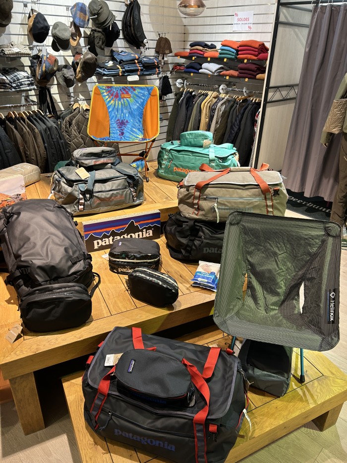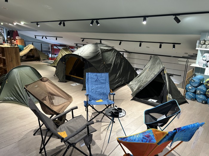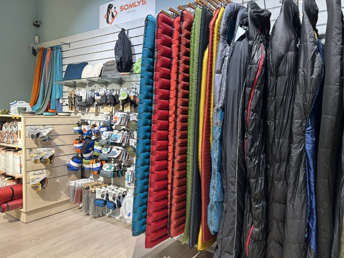 Un choix énorme : tentes, matelas, sacs de couchage, sacs à dos (nombreux modèles de sacs, de toutes les tailles :12 à 70 litres et plus), lampes, réchauds, une véritable caverne d’alibaba de matériels outdoor ainsi que toutes la coutelerie pour nos amis les scouts avec des marques comme Opinel, Leatherman, Victorinox, et bien d’autres.